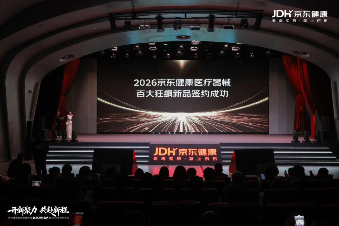 会上,京东健康还与全球百大品牌签署2026年百大狂飙新品,宣布将投入过亿营销资源,以“新品必首发,首发必爆品,场场新标杆”为共同目标,打造医疗器械新品首发全链路解决方案。