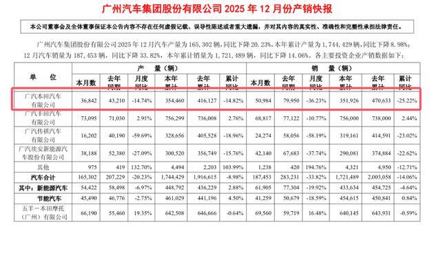 广汽集团最新产销快报数据显示,2025年广汽本田累计销量仅351,926辆,同比下滑25.22%。从2021年算起,这家曾经的市场领跑者销量已连续五年下滑。这是否在一定程度上彰显了,这家昔日以“技术本田”著称的合资企业,正面临前所未有的市场考验,或许是个值得观察的课题。