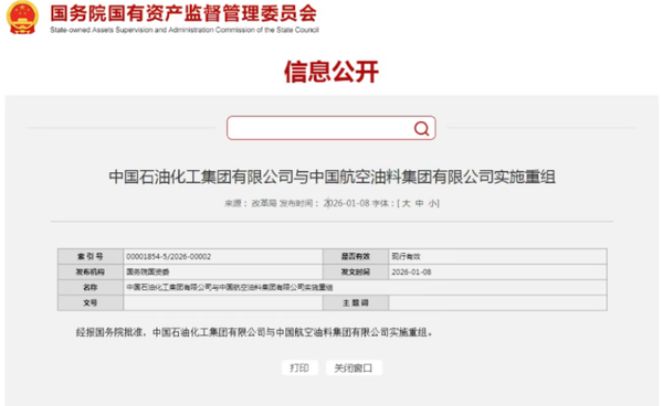 2026年1月8日,经国务院批准,中国石油化工集团有限公司与中国航空油料集团有限公司正式实施重组,这是央企专业化整合、优化国有经济布局的重要举措,将重塑国内航油产业链并强化航空能源安全保障。