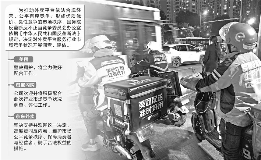 国家将开展外卖行业市场竞争状况调查 三大平台积极回应并呼吁公平竞争