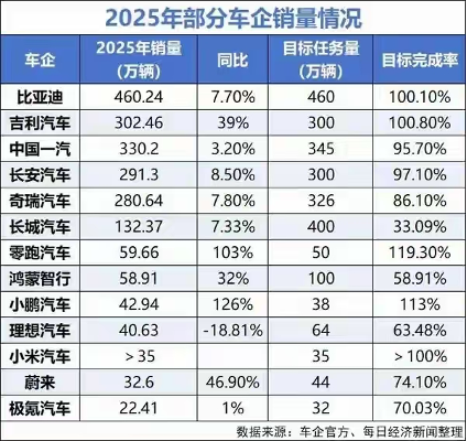 公开资料显示,2025年,长城汽车以132.37万辆的销量仅完成400万辆目标任务的33.09%,成为榜单中目标完成率最低的企业。