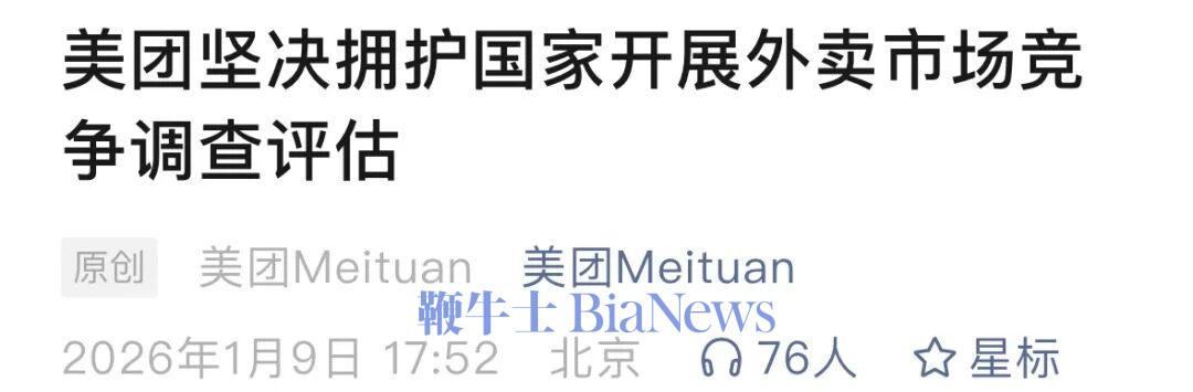 另一边,1月9日消息,近日,国务院反垄断反不正当竞争委员会办公室(简称:国务院双反办)宣布依据《反垄断法》规定,对外卖平台服务行业市场竞争状况开展调查、评估。