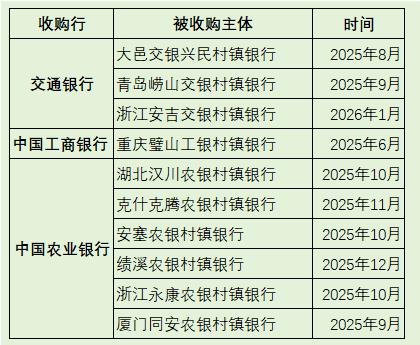 截至2026年1月,工商银行、农业银行、交通银行三大国有银行已累计获批实施10个“村改支”项目,其中工商银行1家、交通银行3家、农业银行6家。