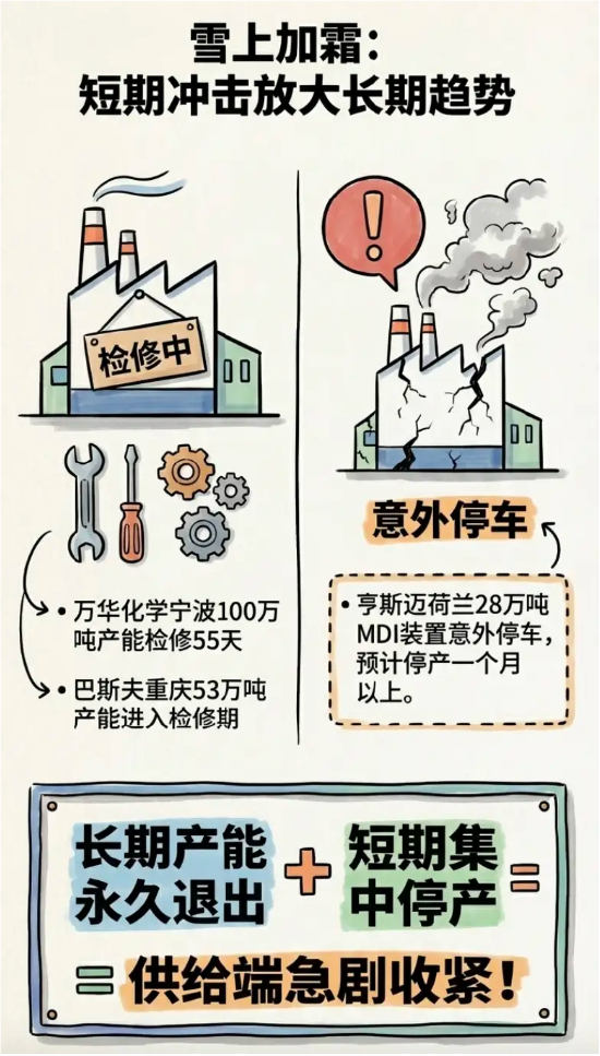 长期产能永久退出,叠加短期集中检修和意外停产,供给端一下子就紧张了。