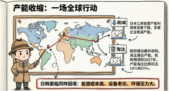 第一层,全球产能在永久性收缩。欧洲化工因为能源成本、碳排放成本、设备老化三重压力,正在永久关停产能。日韩也在淘汰落后产能。供给少了,价格自然涨。