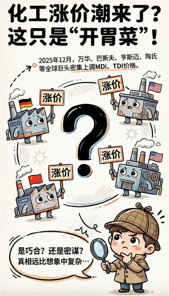 2025年12月,万华化学和全球化工巨头巴斯夫、亨斯迈、陶氏,密集上调了MDI和TDI的价格。
