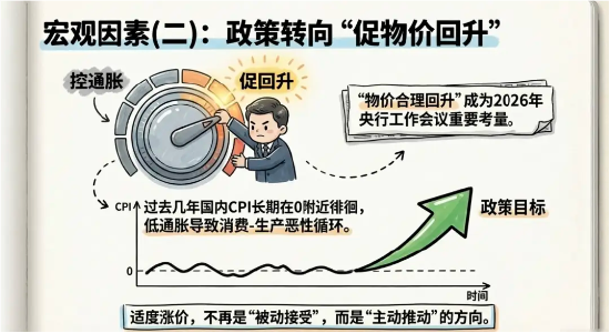 第三层,政策导向从“控通胀“转向“促物价回升“。温和通胀成为政策目标,适度涨价不仅被接受,而且被鼓励。