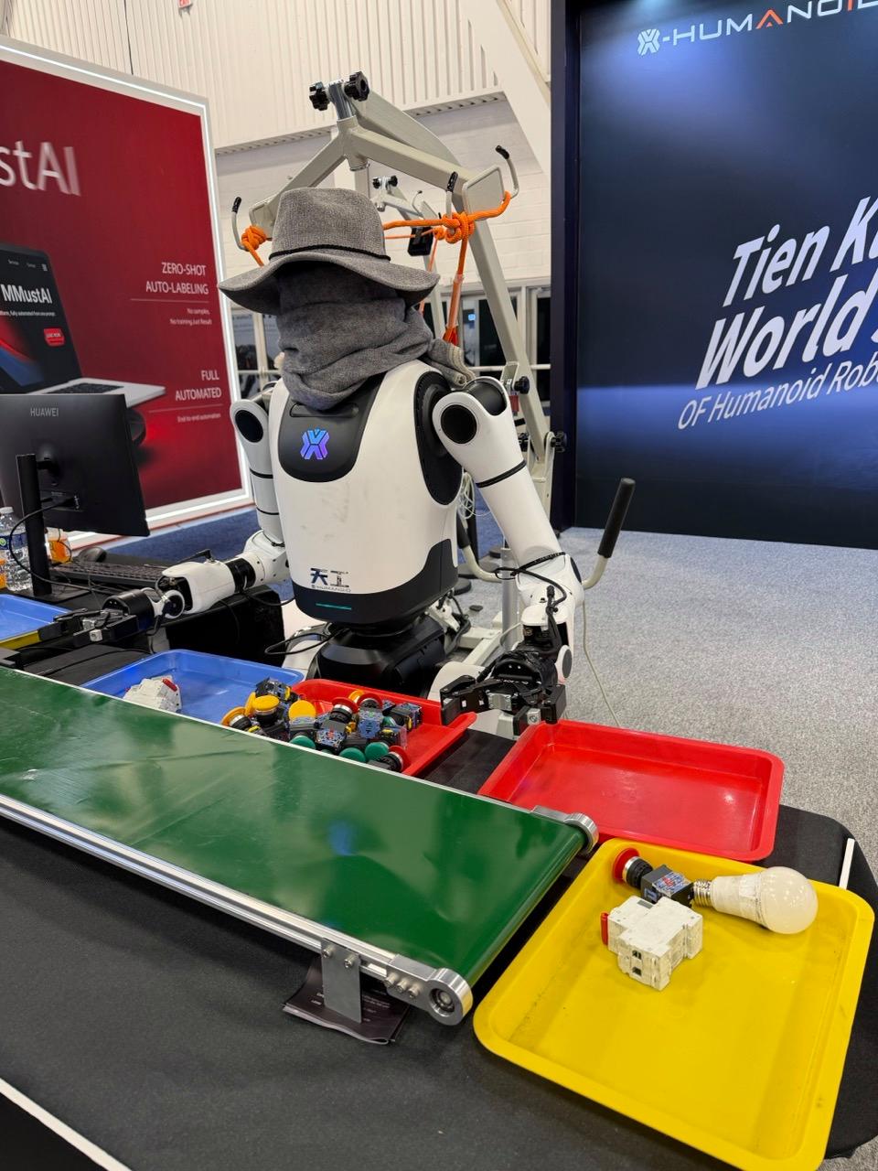 作为「具身天工」平台打造的应用产品,「具身天工 2.0」机器人在 CES 2026 现场展示了全自主分拣零部件的工作流程。在雷科技完整观看的一场分拣流程中,这款机器人只有个别「货品」未能成功分拣,整体准确率颇高。北京人形展台人员特别强调道,这还是缺乏技术人员现场调试后所能达到的程度。
