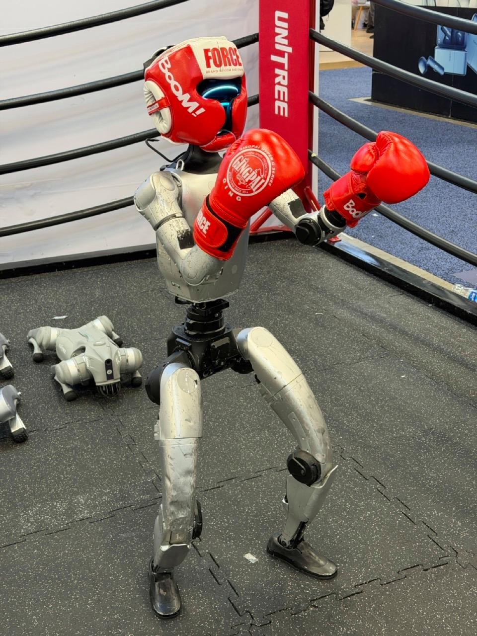 当然,就雷科技 CES 2026 报道团成员在现场所见,宇树展台的大部分区域都被设置成了「搏斗竞技场」,无比鲜明地体现了这家企业一贯的对外展示风格。