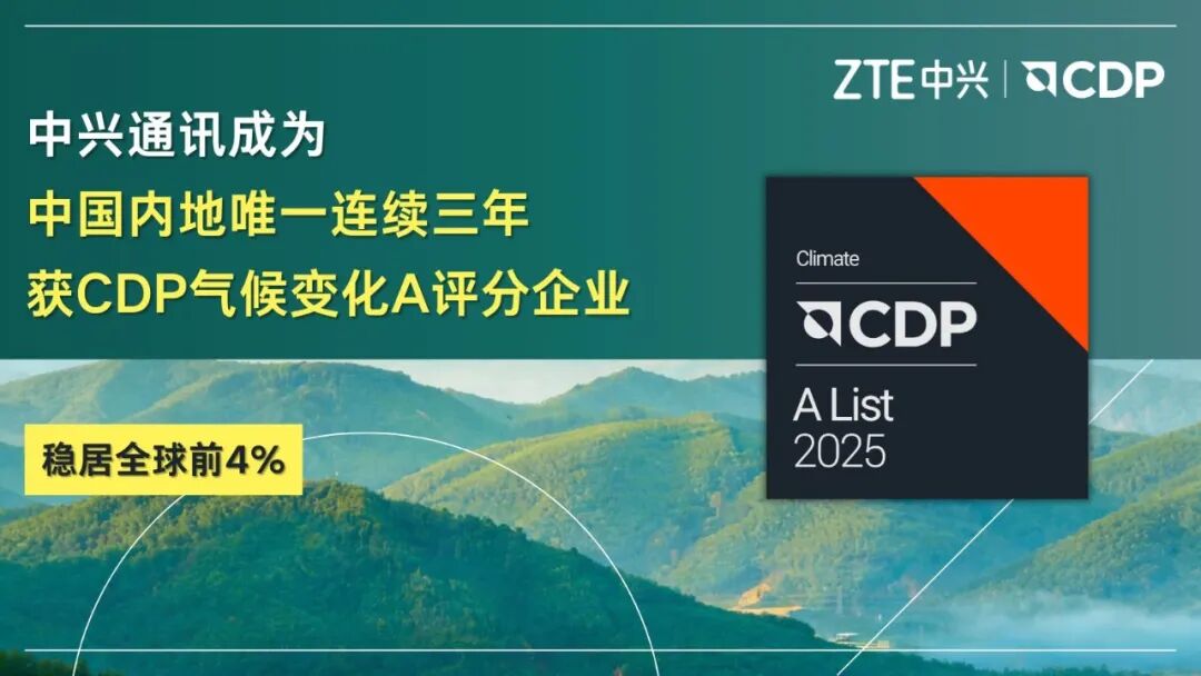 近日,中兴通讯凭借在气候变化管理、环境信息披露及低碳战略实施等方面的卓越表现,再次荣登全球知名环境披露平台CDP(全球环境信息研究中心)气候变化最高级别“A评分榜单”,稳居全球前4%。