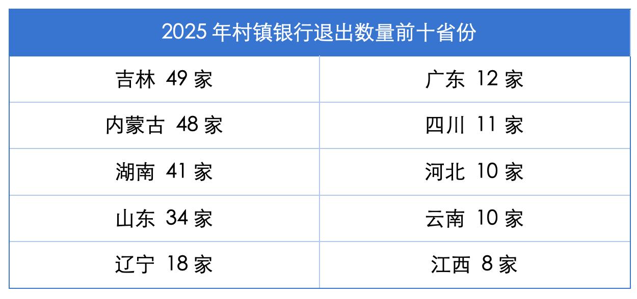 据了解,吉林、内蒙古和湖南村镇银行退出数量靠前,主要得益于组建省级农商银行或农商系改革推进。