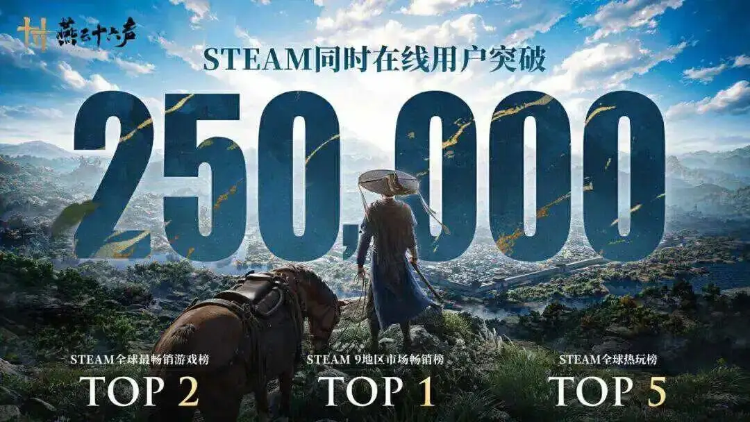 ▲图:《燕云十六声》国际服上线后在Steam上同时在线用户超25万人