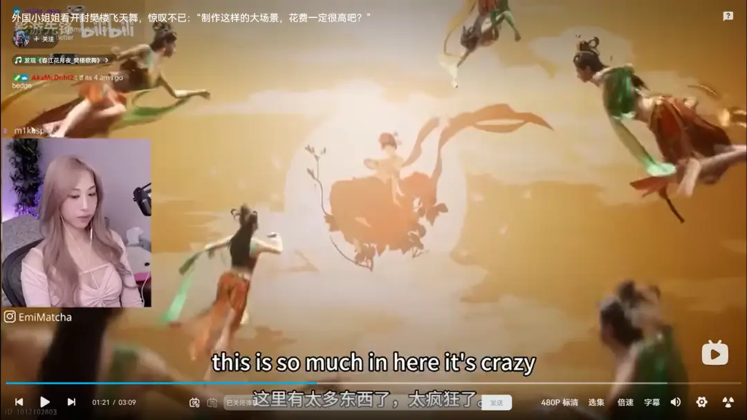 ▲图:B站UP主从YouTube上搬运外国女主播被《燕云十六声》开封樊楼飞天舞所震惊的视频