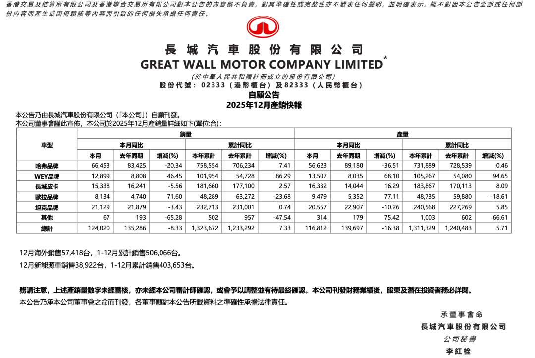 当中国汽车市场充斥着乌烟瘴气的营销时,魏建军破圈的方式简单而“粗暴”——实话实说,这让长城汽车获得了巨大的正向加持。2025年,长城汽车实现销量132.3万辆,同比增长7%。虽然和2021年立下的400万辆目标相距甚远,但也有所斩获。