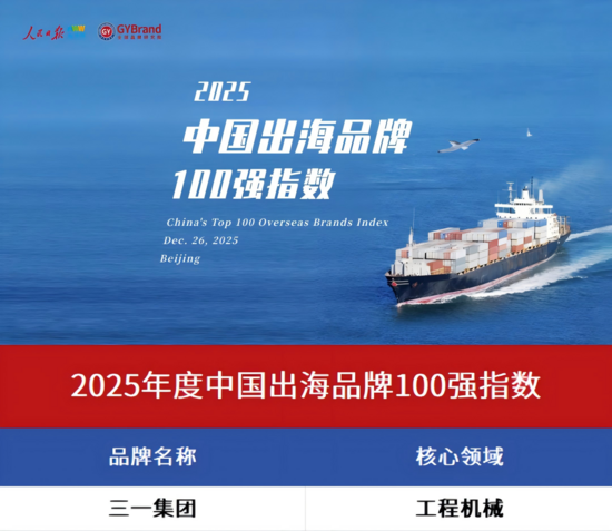 近日,由人民日报海外网与GYBrand全球品牌研究院联合编制的《2025年度中国出海品牌百强指数发展报告》发布,三一集团成功入选2025中国出海品牌100强。