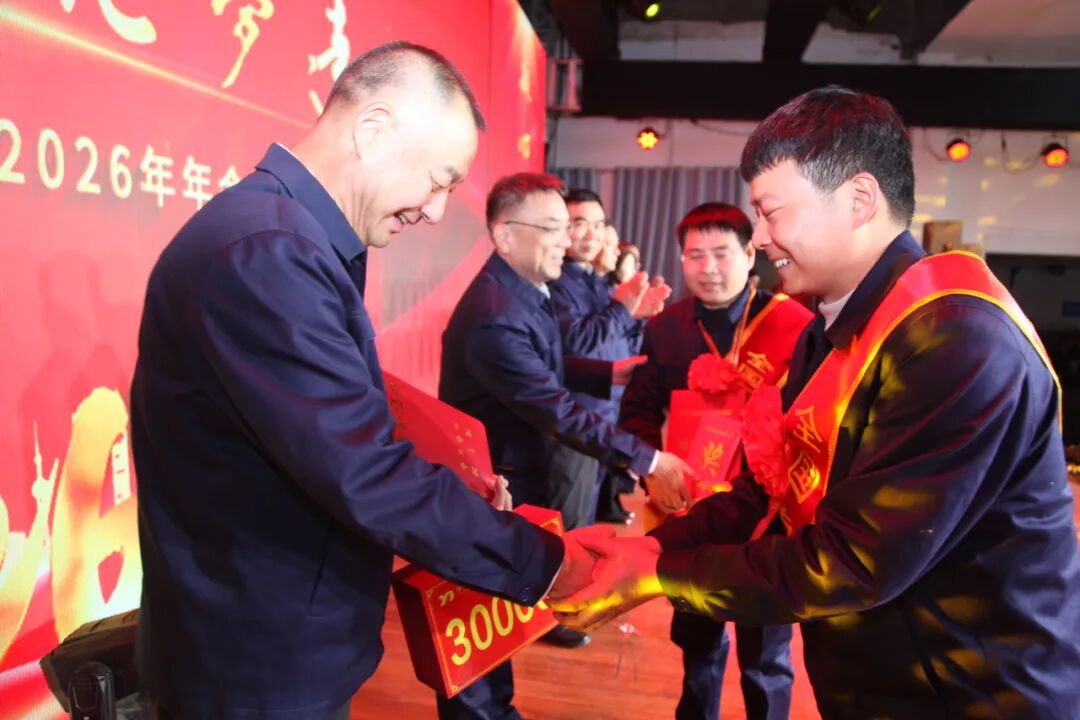 【本刊讯】近日,在伊电控股集团有限公司(以下简称“伊电集团”)2026年年会上,获得“全国劳动模范”荣誉称号的铝冶炼事业部职工胡任官获得集团30000元奖励,伊电集团董事长霍斌为胡任官颁奖。
