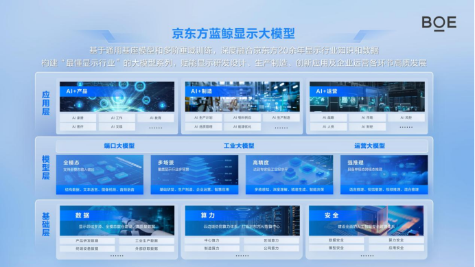 作为全球显示行业的龙头企业,京东方科技集团股份有限公司(以下简称“京东方”)提前布局“AI+战略”,以数据要素为核心驱动力,建设“AI工厂”,打造以“蓝鲸显示大模型”为代表的行业级智能中枢,以“大模型—智能体—应用系统”的创新体系,实现了显示产业从数据治理、知识积累到智能决策的全面跃升,为我国“人工智能+制造”提供了可复制、可推广的标杆实践。