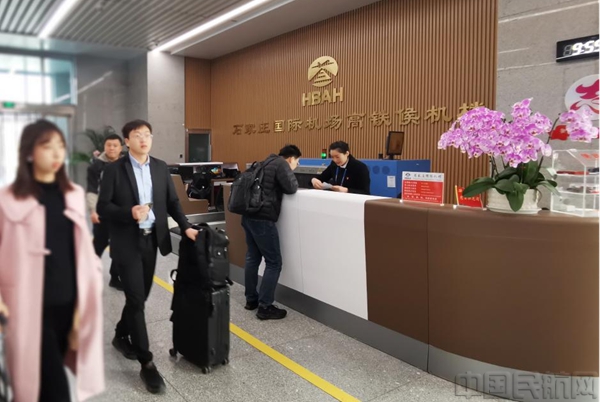 石家庄机场工作人员为空铁联运旅客办理“乐享中转”服务