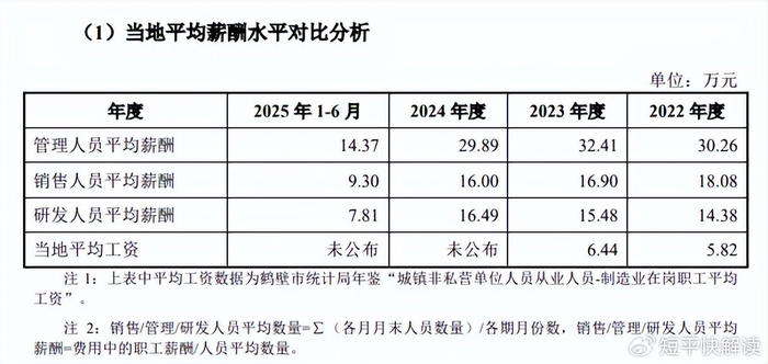 值得一提的是,管理人员、销售人员平均薪酬要高于研发人员薪酬,前者分别为30.26万元、32.41万元、29.89万元、14.37万元;后者分别为18.08万元、16.9万元、16万元、9.3万元。