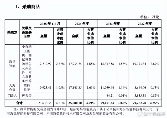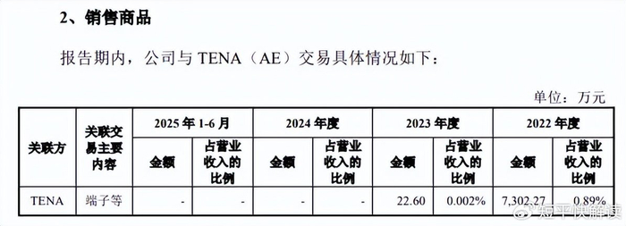 需要指出的是,公司2022年、2023年对TENA的销售额分别为7,302.27万元、22.6万元,同时期的采购额分别为5,835.38万元、84.21万元。