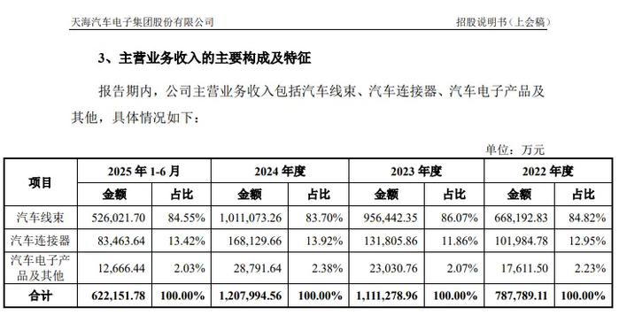 天海电子在招股书称,公司汽车线束业务收入与目前主营自主汽车线束业务的A股上市公司相比,排名第一,汽车连接器业务收入与目前主营汽车连接器业务的A股上市公司相比,排名前三。