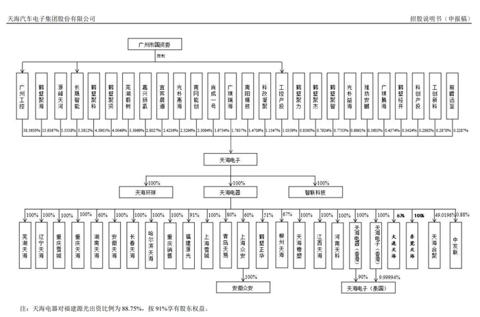 广州工控通过收购成为控股股东。天海电子控股股东是广州工业投资控股集团有限公司(广州工控),直接持股比例为38.57%,与长晟智能、工控产投受同一控制,持股比例分别为5.38%、1.04%,三家企业合计直接持股44.98%,实际控制人是广州市国资委。