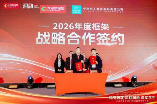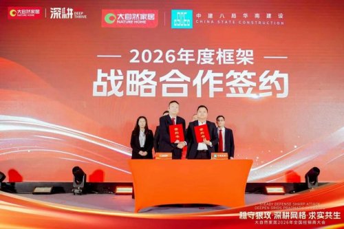 值得关注的是,在此次活动中,大自然家居与中建电子商务、中建八局华南建设两大公司圆满完成战略签约。此举不仅标志着大自然家居B端渠道的系统化布局获得重要市场认可,也是在未来存量市场情况下的一次重要破局,更为品牌在高端项目与大宗工程双赛道协同发展进一步夯实基础,是持续完善覆盖多层级市场的全方位业务体系布局,为企业稳居行业前茅贡献力量。