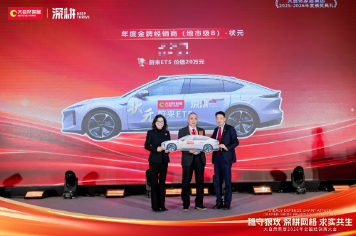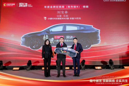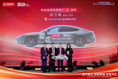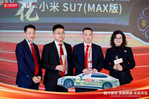 大会对过去一年逆势增长、表现卓越的标杆经销商予以隆重表彰。其中,大自然家居集团董事会主席、集团总裁(CEO)佘学彬、集团董事会副主席袁顺意,携手仰望汽车总经理胡晓庆,共同为“年度金牌经销商”颁发仰望U8L,以榜样力量激发全域“向赢而战”的奋斗激情。