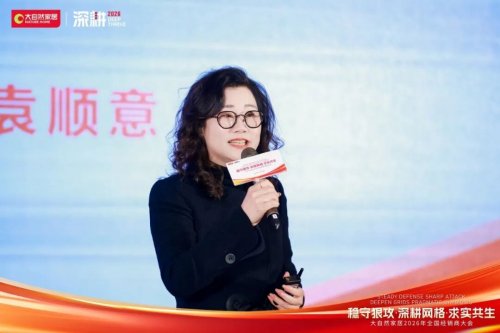在闭幕环节,大自然家居集团副董事长袁顺意首先向全体经销商伙伴表达了诚挚感谢。她回顾了双方多年来并肩前行、共同守护品牌成长的历程,言语间充满感动与振奋,并对未来携手共赢充满信心。袁顺意强调,本次年会是一次立于时代分水岭的战略集结与誓师,核心在于凝聚全域体系之力——以网格为战场、以求实为准则、以共生为基石,协同应对周期挑战,共赢可持续未来。