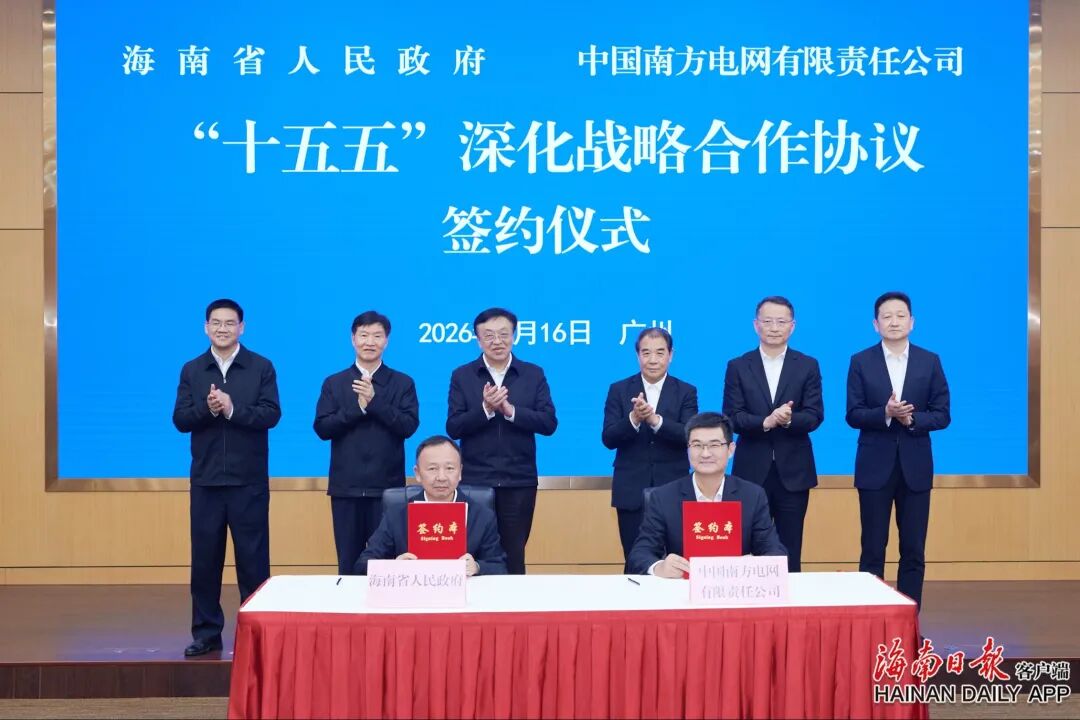 海南省政府与南方电网公司在粤签署“十五五”深化战略合作协议