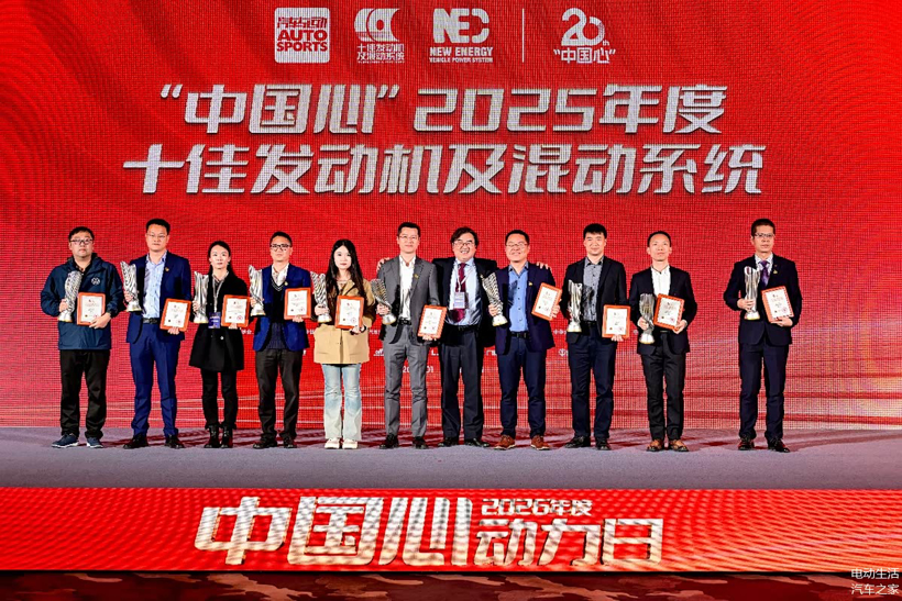 长城汽车泛越野超级电混架构 Hi4-Z、东风汽车马赫超级越野混合动力系统、上汽通用汽车“真龙”插混Pro系统、极光湾科技1.5T插电式混合动力系统、奇瑞汽车鲲鹏超能混动CDM-O 2.0TD混动专用发动机、广汽丰田2.0L混合动力系统、上汽通用五菱汽车股份有限公司五菱灵犀动力3.0插电式混动系统、梅赛德斯-奔驰全新M254直列四缸发动机+第二代48V ISG智能电机系统、仰望汽车2.0T水平对置发动机、上汽大众第五代EA888发动机,荣膺了“中国心”2025年度十佳发动机及混动系统的桂冠。