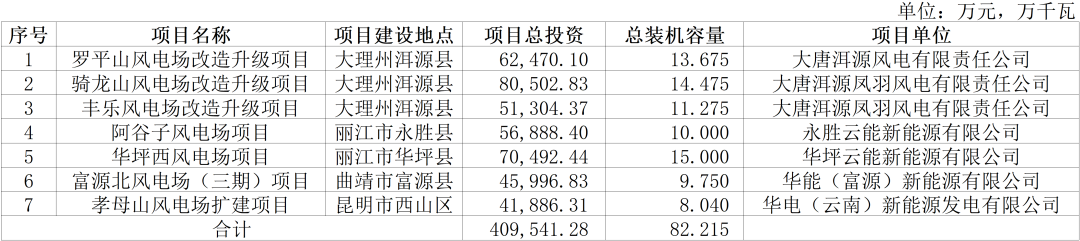 罗平山风电场改造升级项目建设地点位于大理州洱源县;该风电场目前已建成39台1.25兆瓦风电机组,装机规模为4.875万千瓦。