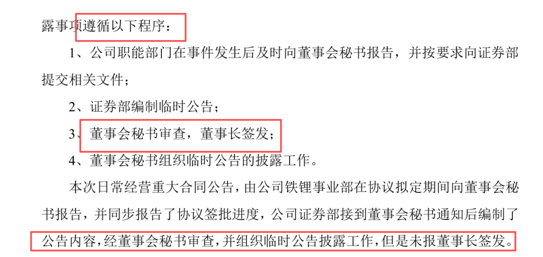 有趣的是,按照公司的《信息披露管理制度》,这个公告本应该报董事长签发,但是却并没有,证券部编制公告后,董秘审查完就披露了。