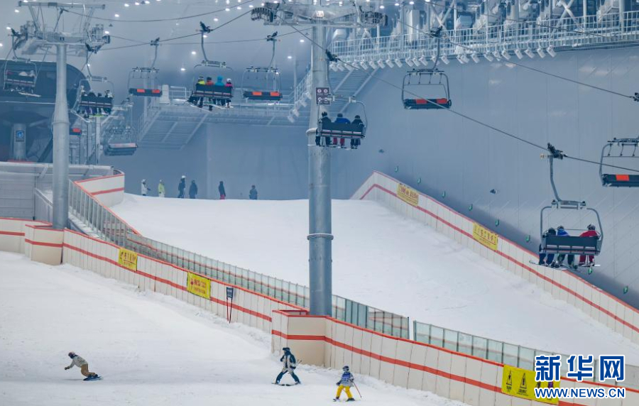 走进黄陂甘露山国际滑雪场,零下6℃的恒温环境中,五彩斑斓的滑雪服点缀着洁白雪道,初学者在教练指导下小心翼翼滑行,资深滑雪爱好者则疾驰而下,欢声笑语回荡在场馆内。