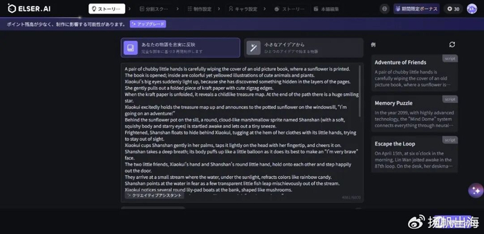 从定位上看,Elser.AI主打“一prompt 生成完整动漫故事视频”,工具使用的起点从构思故事开始。