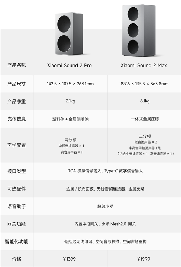 1399元!小米Sound 2 Pro音箱开售:支持中枢网关、超级小爱