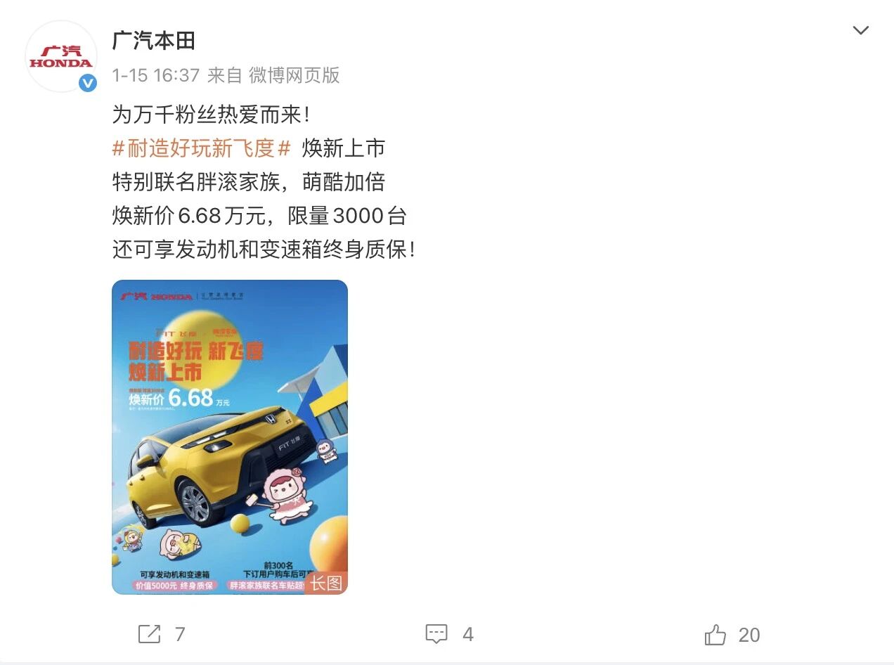 不过在微博上也有博主称,这批 3000 台 6.68 的新飞度“已经卖完了”。