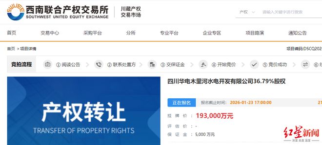 微成都报道据西南联合产权交易平台,央企中国华电集团有限公司旗下在川水电资产——四川华电木里河水电开发有限公司(简称“木里河公司”)36.79%的股权被公开挂牌转让。挂牌底价为19.3亿元,保证金5000万元。