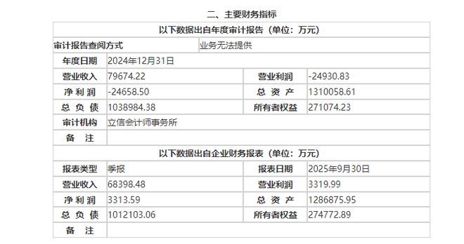 财务数据显示,2024年及2025年前三季度,木里河公司实现营收分别为7.97亿元、6.84亿元,净利润-2.47亿元、3313.59万元。截至2025年9月底,公司总资产为128.69亿元,总负债为101.21亿元,所有者权益为27.48亿元。