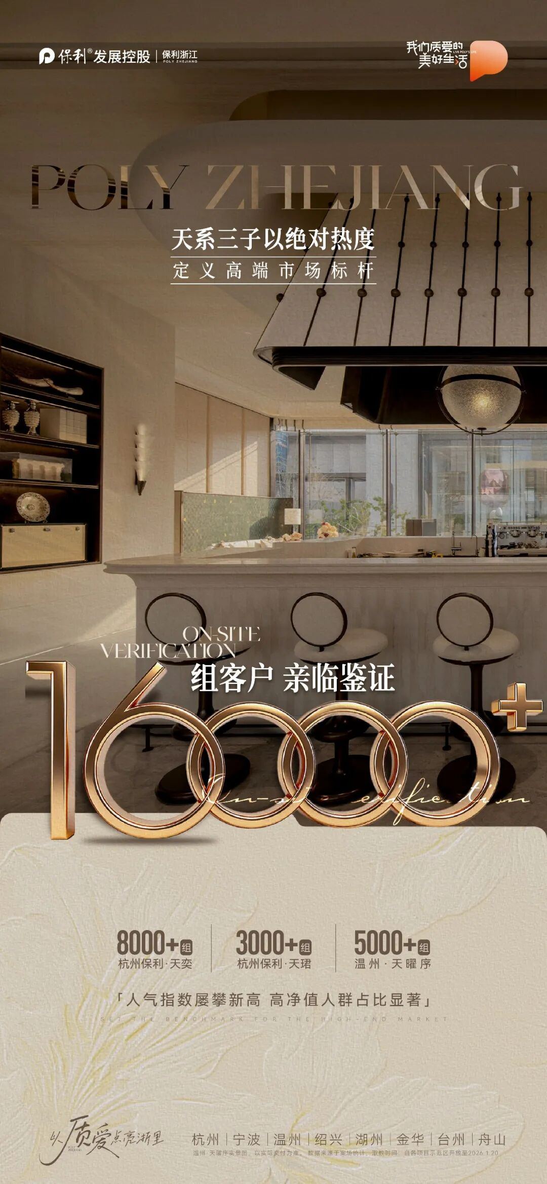 这一切并非偶然,而是产品影响力的集中爆发。保利浙江“天系三子”——杭州保利·天奕、杭州保利·天珺、温州·天曜序,自面市以来已吸引超3000位同行,跨越全国20余个省市专程到访;超140家权威机构深度考察。与此同时,市场端反响同样热烈:短短半年时间,超16000组高意向客户亲临现场品鉴,高净值人群认购意向持续高涨。行业与市场的双重认可,共同印证了其标杆地位。
