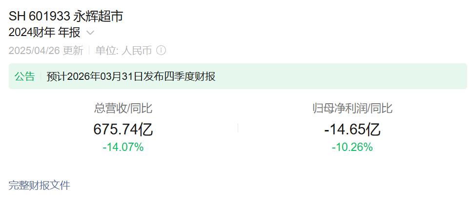 公告显示,2025年永辉预计归母净利润亏损21.4亿元,扣非归母净利润亏损规模进一步扩大至29.4亿元。相较于2024年同期14.7亿元的亏损,今年的亏损幅度同比扩大约45.6%。