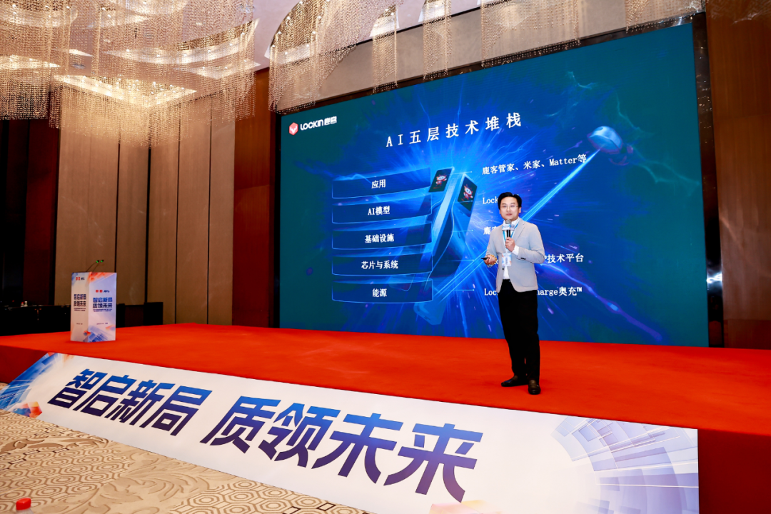活动现场,鹿客科技CMO胡跃做了主题为《能量在场,AI无界》的精彩演讲。他提到,能源是AI的基石,鹿客的隔空充电无限续航技术,和英伟达创始人黄仁勋在2026CES提出的“五层蛋糕理论”不谋而合。鹿客作为隔空充电AI智能锁全球开创者,自研Lockin