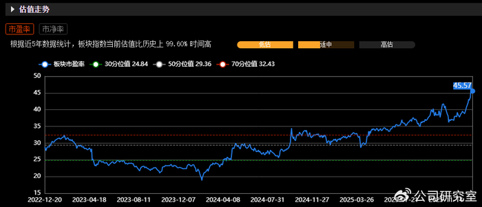 上半周,电网设备大热,有投资者在周二尾盘追进中国西电(601179.SH),第二天就被套。这哥们赶紧去查看电网设备整体市盈率。Choice数据显示,根据近5年数据统计,截至2026年1月22日收盘,该行业市盈率(TTM)45.57倍,比历史上99.6%时间都高。