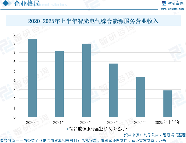 广州智光电气股份有限公司依托多年的技术积累及服务实践,为客户提供高质量的数字能源技术与产品,并以产品为基础围绕客户需求提供高效的综合能源服务解决方案,为电网企业、能源企业、工商业企业提供“安全、节约、舒适”的供、用能体验。顺应新能源建设及新型电力系统发展需要,公司在自研储能PCS、BMS、EMS、电池PACK等核心技术与产品基础上开展储能系统集成、独立储能电站等业务,行业内首家倡导并推出级联型高压大容量储能技术,实现了储能电站安全、高效、全生命周期综合性价比高等核心目标。公司数字能源技术及产品主要包括储能电站系统、电机控制与节能、电网安全与控制、岸基电源、智慧电缆等;综合能源服务包括微网与分布式能源解决方案、综合节能与环保、新能源电站投资和电力工程EPC。据统计,2025年上半年,智光电气综合能源服务营业收入为2.89亿元,同比增长31.36%。