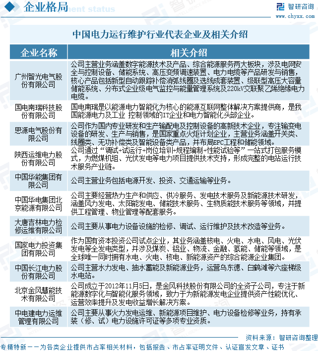 电力运行维护行业企业格局和重点企业分析