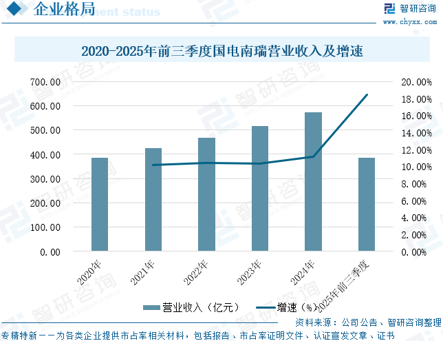 国电南瑞科技股份有限公司是我国能源电力及工业控制领域的领军企业,是以能源电力智能化为核心的能源互联网整体解决方案提供商,是国务院国资委“科改示范企业”。公司深耕自动化技术、柔性技术和数字技术,为能源电力、市政公用、节能环保、水利水务、轨道交通、石化工矿等行业提供软硬件产品、整体解决方案,产品和服务覆盖全国各地及100多个国家和地区。当前,新型电力系统构建与新型能源体系建设持续向纵深推进,能源电力安全、能源数字化转型、新能源高质量发展以及新型工业化等方面的要求更为迫切,产业跨界融合发展的趋势也愈发显著。面对深刻行业环境变化,公司坚持“技术为本、产业为果、支撑为责”的价值理念,构建“三域四层”(电网域、能源互联网域、工业互联网域;控制层、感知层、数据层、价值层)产业布局,打造增量发展空间。持续巩固电网智能、数能融合、能源低碳、工业互联等四大产业集群,重点打造大电网运行控制与电力市场、先进输电与功率器件、智能配电与零碳园区、智慧用电与高级量测、能源数智、清洁发电与能量转换、工业控制与市政交通、智能运维装备等业务,深度推动人工智能、边缘计算、数字孪生、区块链、安全防护等前沿数字技术,以及先进信息通信技术、控制技术与柔性直流、新型电力系统故障防御、可再生能源友好接入、源网荷储协调控制、微电网稳定控制和运行等能源电力技术深度融合,进一步筑牢技术护城河、增强核心竞争能力。从企业经营情况来看,2025年前三季度,国电南瑞营业收入为385.77亿元,同比增长18.45%。