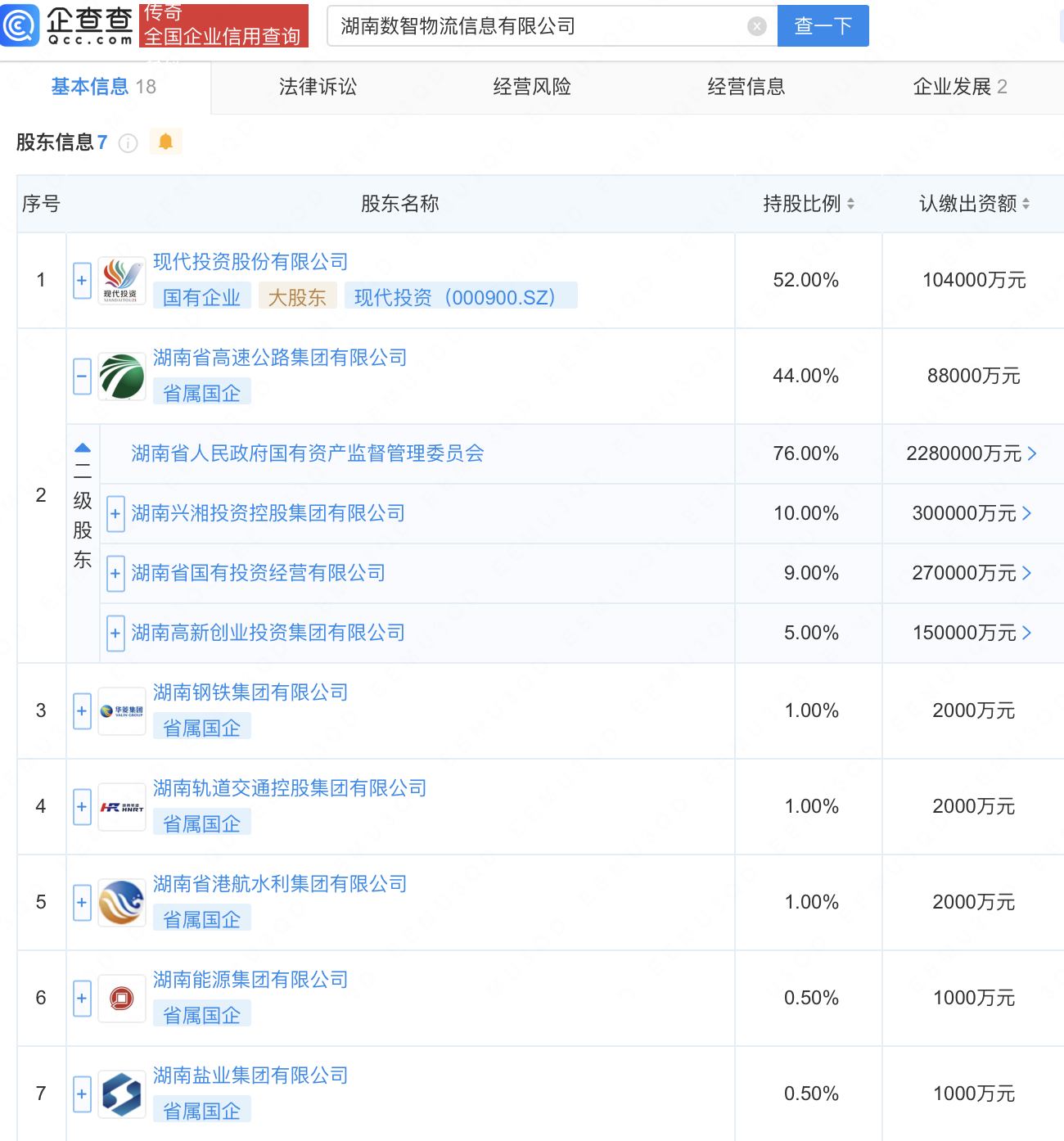 现代投资、湖南国资成立数智物流信息公司,注册资本20亿