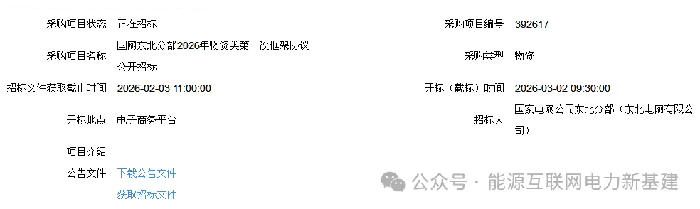 国网东北分部2026年物资类第一次框架协议公开招标