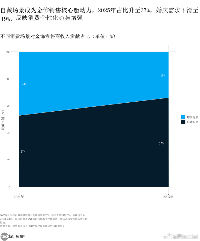 世界黄金协会《2025年中国金饰零售市场洞察》:2025年自戴场景占比37%