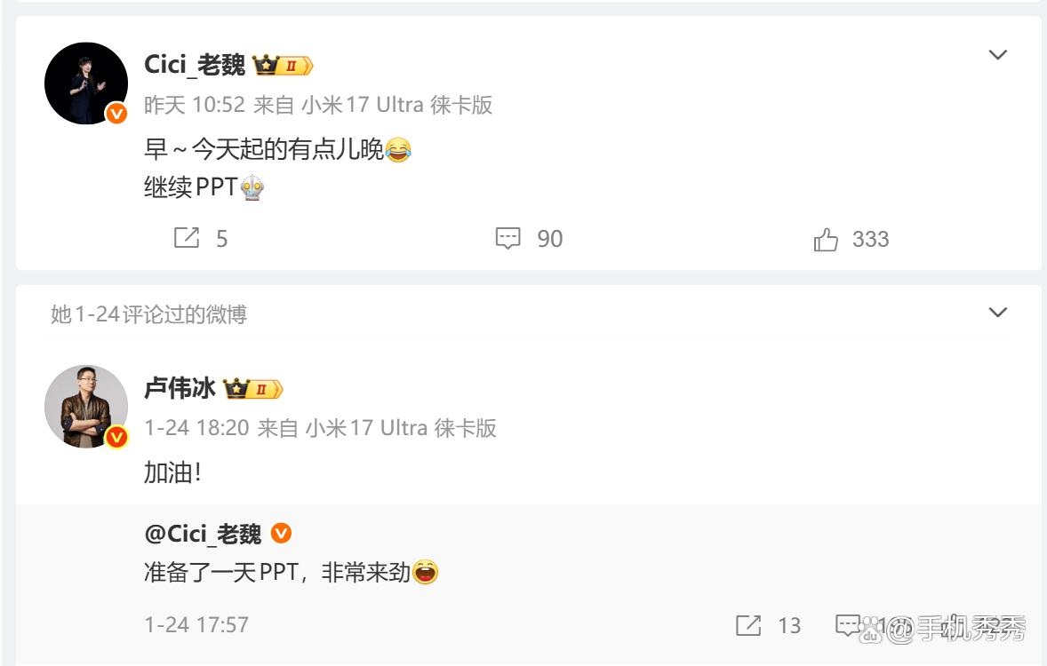 最近她就在透露,一直在准备PPT,还获得了卢伟冰的转发和加油鼓励。